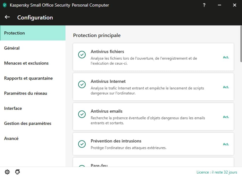 | Small Office Security | 1 Serveur 5 Appareils, 1 Serveur 10 Appareils, 2 Serveur 20 Appareils |